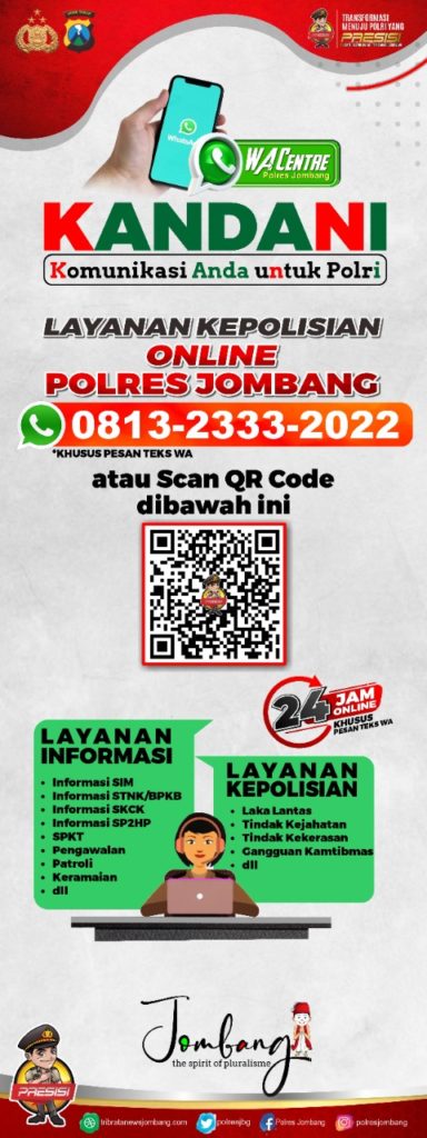 “Masyarakat dapat berkomunikasi dengan Polres Jombang mengenai segala hal yang berkaitan dengan layanan kepolisian. Termasuk peristiwa yang terjadi di wilayah Jombang,” kata Qoyyum, Senin (7/2/2022).