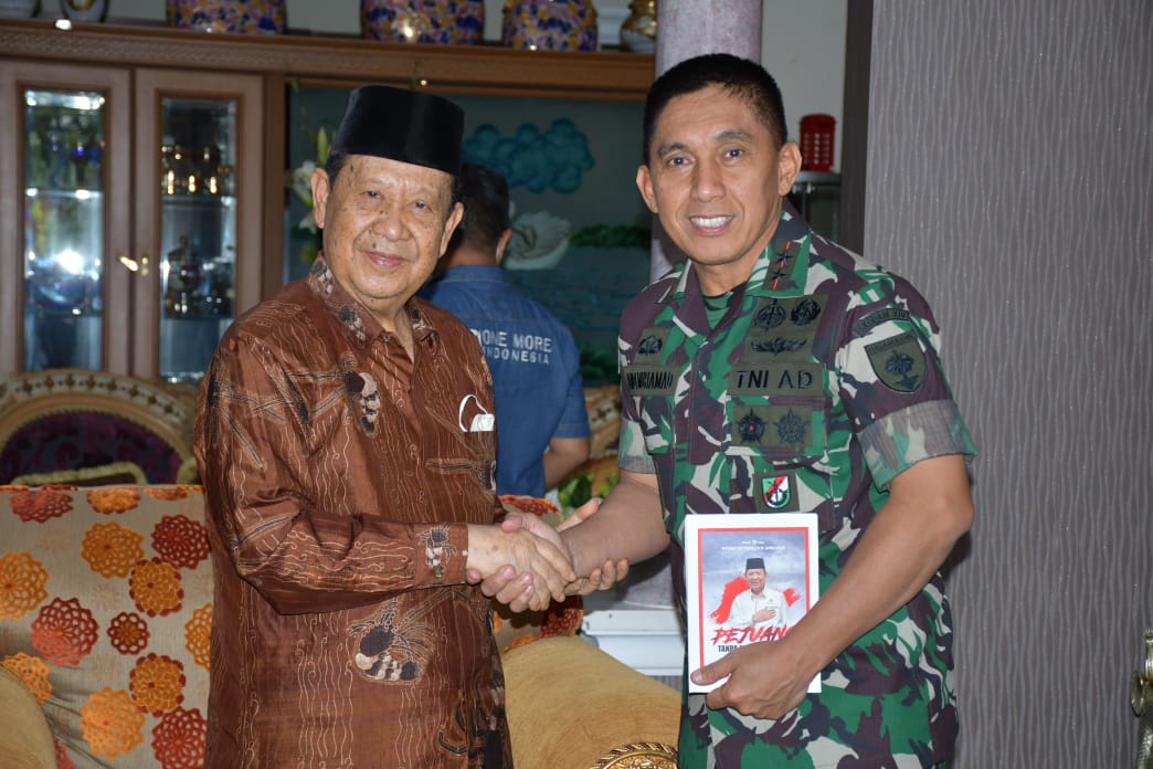 Pangdam XIV/Hasanuddin, Mayjen TNI Andi Muhammad, S.H., menyambangi kediaman mantan Gubernur Sulawesi Selatan Mayjen TNI (Purn) H. Amin Sjam di Jl. Mirah Seruni Makassar, Selasa (7/02/2022).