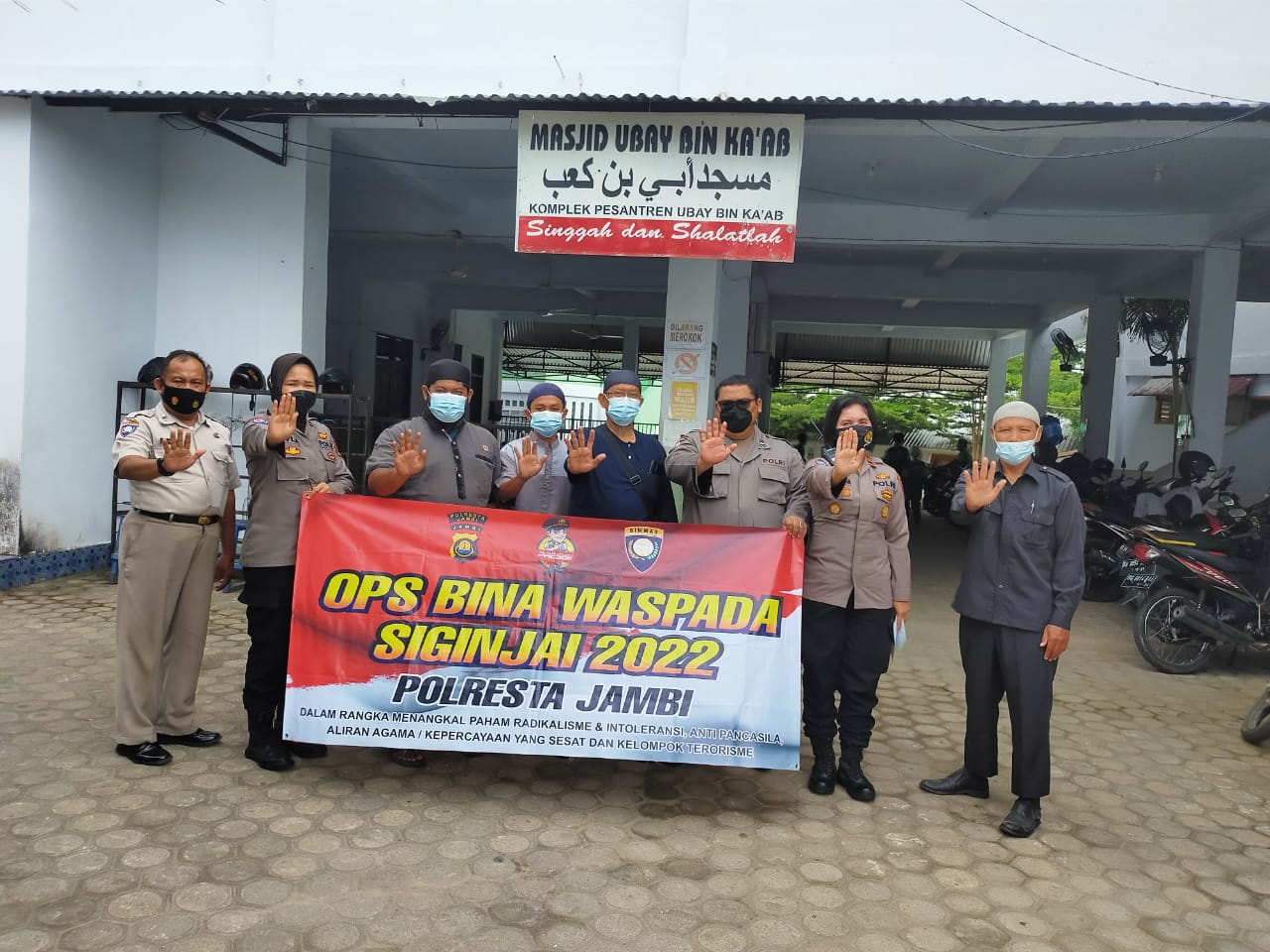 Kompol Mardonna menjelaskan ” Sat Binmas Polresta Jambi melaksanakan giat Ops Bina Waspada antisipasi paham radikalisme , intoleransi , anti Pancasila , serta kepercayaan yang sesat dan kelompok terorisme di Masjid Nurdin Hasanah , Lembaga Dakwah Islam Indonesia Kota Jambi, Hotel O Dua Weston, Gereja Santa Gregorius Agung Kota Jambi dan di Ponpes Ubay Bin Ka’ab Telanai Pura