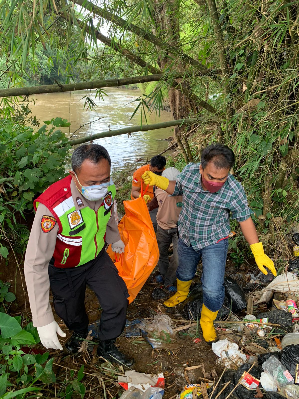 Kemudian Tim Inafis Sat Reskrim Polres Tasikmalaya Kota bersama Polsek Cisayong Evakuasi jasad korban di sungai Citanduy.