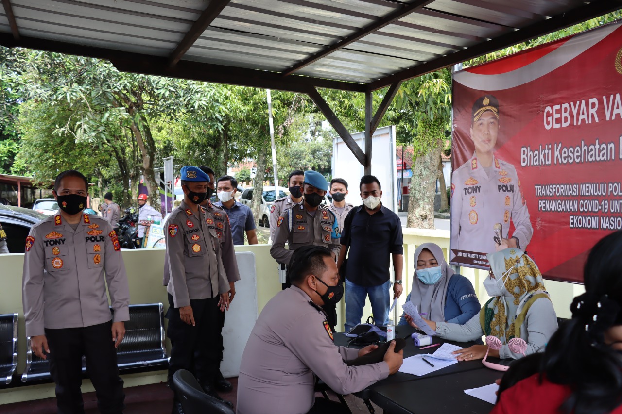 Sehari setelah resmi dilantik oleh Kapolda Jabar sebagai Kapolres Ciamis, AKBP Tony Prasetyo Yudhankoro, S.I.K., SH., M.T., meninjau pelaksanaan vaksinasi di Klinik Pratama Polres Ciamis, di Jalan Jenderal Sudirman No.271, Sindangrasa, Ciamis, Jawa Barat, Rabu (09/02/2022).