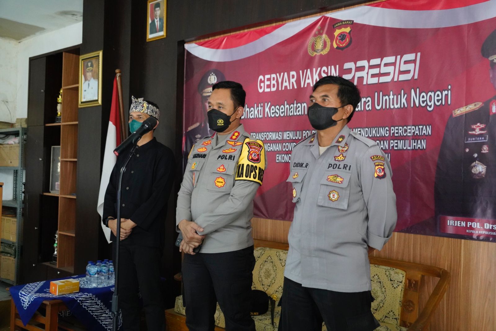 Kapolres Tasikmalaya Kota AKBP Aszhari Kurniawan, SH., S.I.K. M.Si. didampingi Kabag Ops Kompol Shohet, SH., MH. meninjau pelaksanaan kegiatan Vaksinasi Anak Usia 6-11 tahun yang digelar di Madrasah Ibtidaiyah Pangkalan Indihiang.