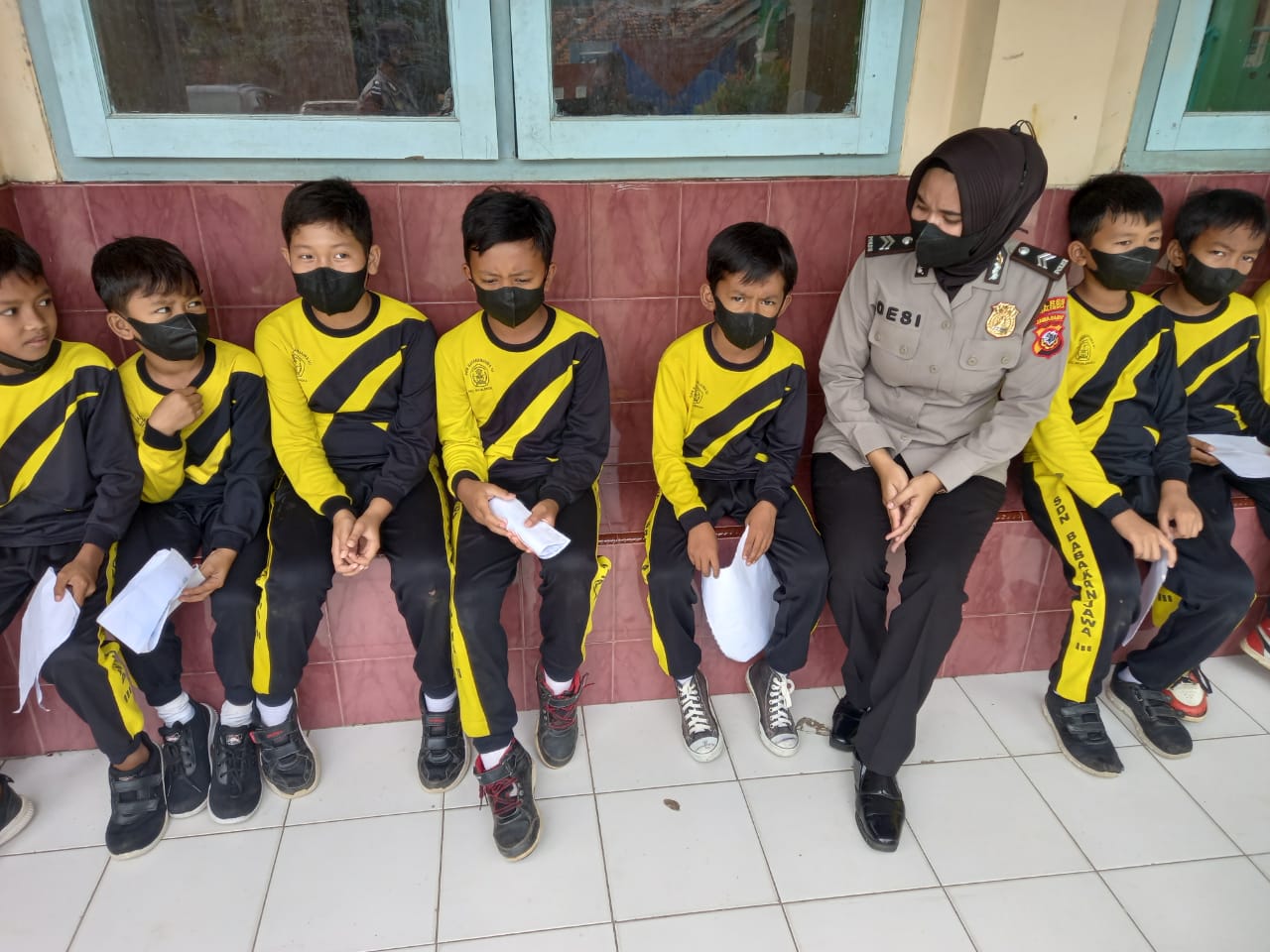 Polwan Bhabinkamtibmas Polsek Majalengka Kota Polres Majalengka, Polda Jabar Briptu Desi Yuanasari menyambangi anak anak Sekolah Dasar yang akan melaksanakan Vaksinasi dan menghibur agar tidak takut divaksin yang berada di SDN Babakajawa III Kelurahan Babakanjawa Kecamatan Majalengka Kabupaten Majalengka,Jumat (11/2/2022).