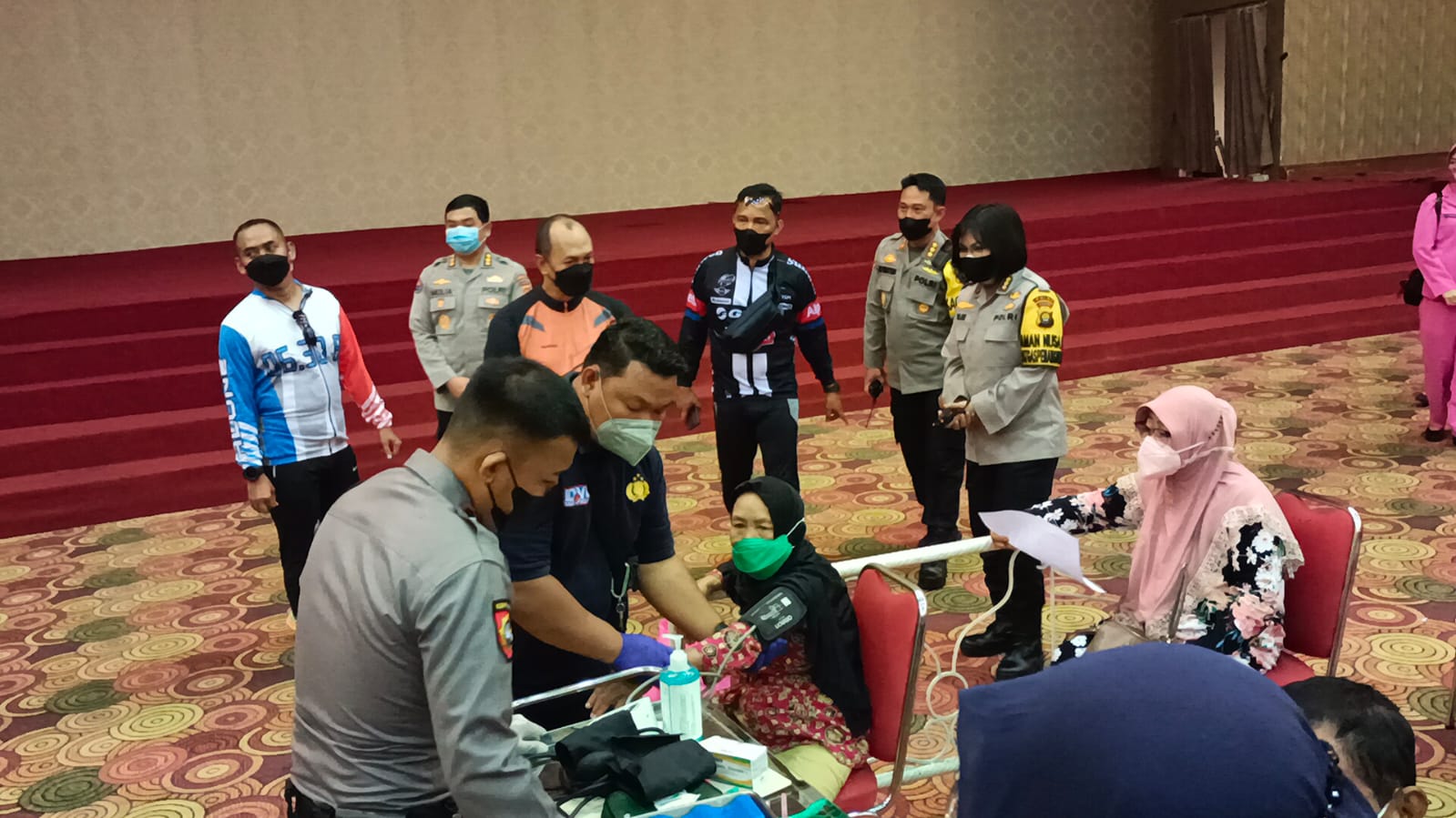 Kapolda Jambi Irjen Pol A Rachmad Wibowo SIK tinjau langsung pelaksanaan vaksinasi usai melakukan olahraga bersepeda bersama Karo Ops Kombes Pol Feri Handoko Soenarso pada Sabtu 12/02 pukul 10.15 wib.