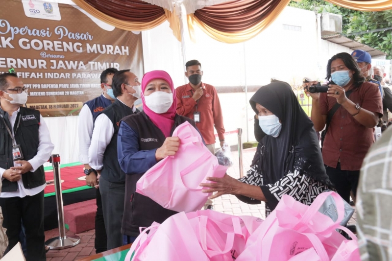Pemerintah Provinsi Jawa Timur (Pemprov Jatim), melalui Dinas Perindustrian dan Perdagangan (Disperindag) menggelar Operasi Pasar (OP) minyak goreng di Kabupaten Magetan.