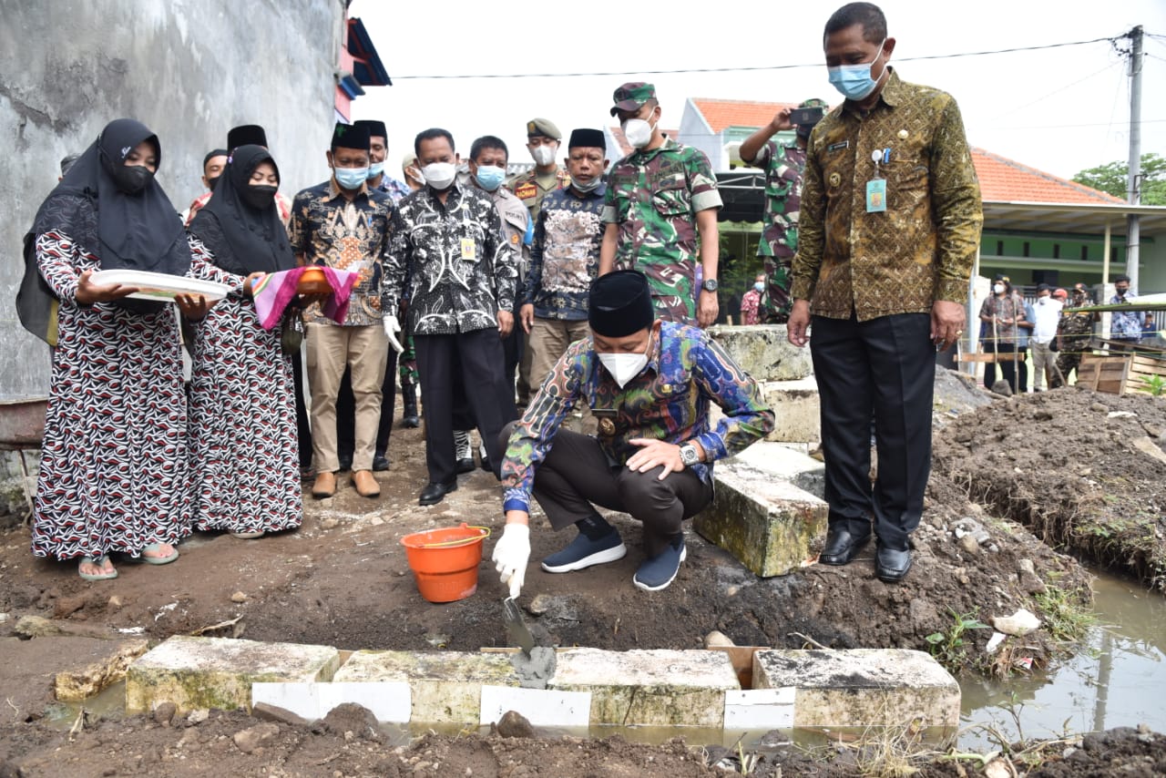 Wabup Sidoarjo Subandi meletakkan batu pertama pembangunan TPQ Darul Istiqomah, Desa Kwangsan Sedati. Kamis, (10/3/2022).