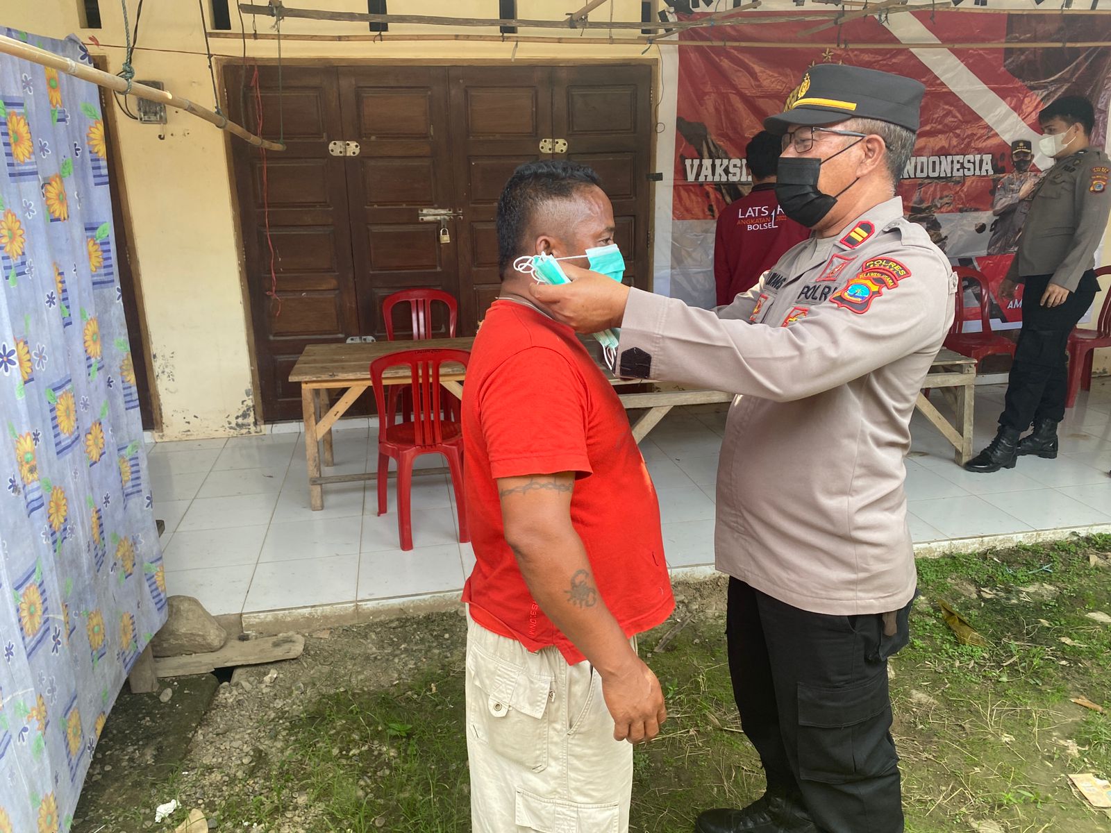 Kegiatan Vaksinasi Serta Pembagian Masker yang Dilaksanakan oleh Polres Bolmong Selatan
