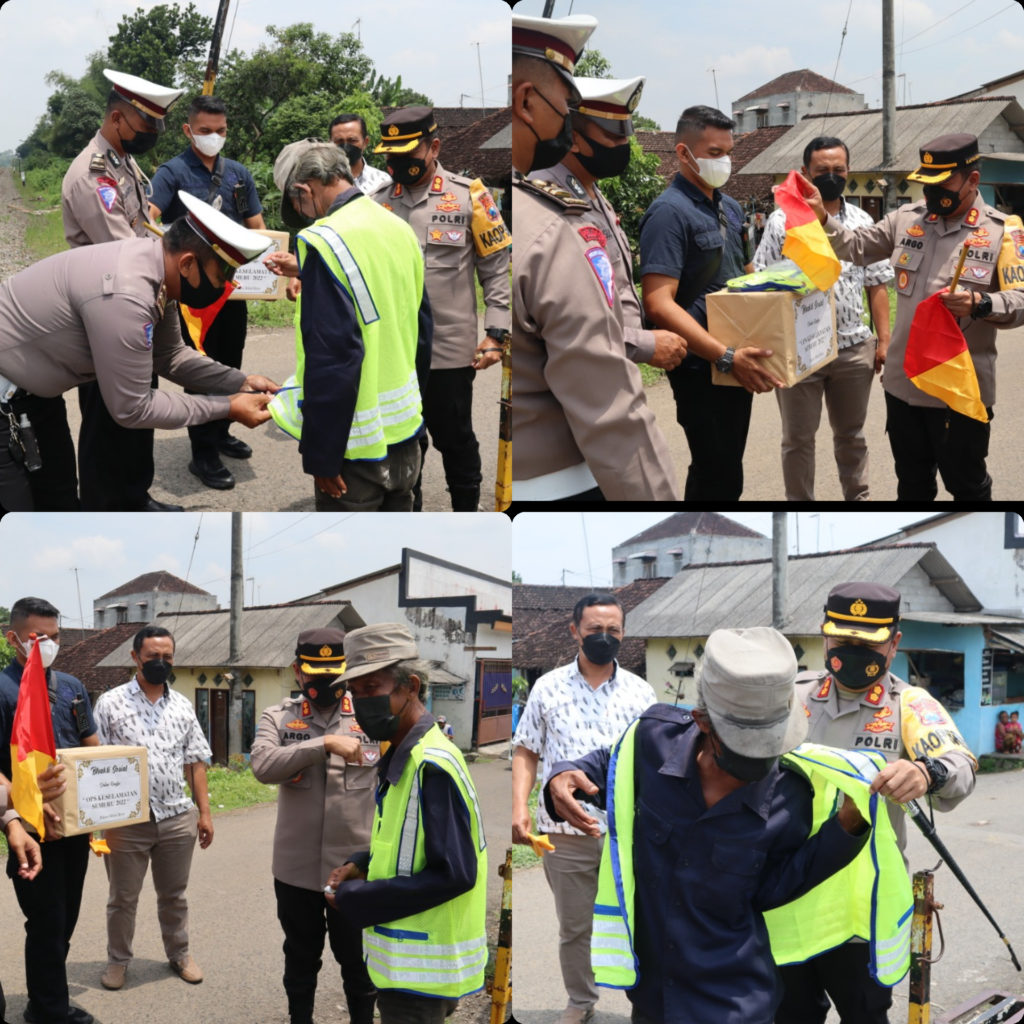 Dalam kesempatan itu, Kapolres Blitar Kota memberikan bantuan sembako dan sarana kontak atau peralatan pendukung untuk Supeltas penjaga perlintasan kereta api tanpa palang pintu