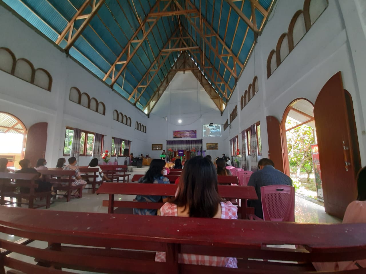 Minggu 13/03/2022. Kompol Dadang Suhendra Wakapolres Bolmong Selatan melaksanakan Ibadah Mingguan di Gereja Sentrum Molibagu Kecamatan Bol – Uki