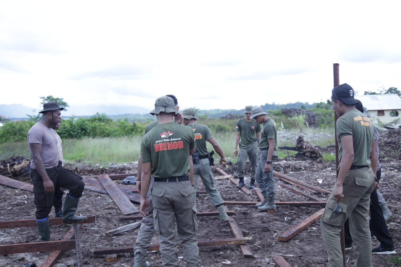Kali ini Satgasres Binmas Noken Ops Damai Cartenz Intan Jaya 2022 mempersiapkan lahan untuk membangun kandang babi di Kampung Yokatapa, milik Ketua FKPM Wksemoso,Rufinus Sondegau.