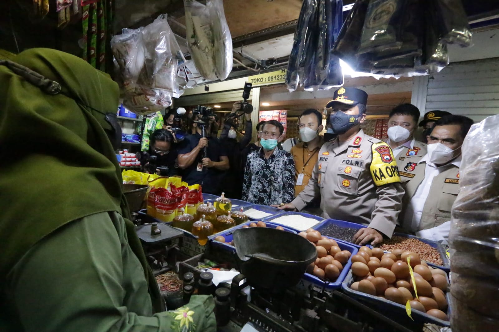 Kapolda Jawa Timur Irjen Pol Nico Afinta bersama Forkopimda jatim dalam hal ini Gubernur Jatim yang diwakili Kepala Dinas Perindustrian dan Perdagangan Jatim Drajat Irawan, Pangdam V/Brawijaya yang diwakili Dandim Surabaya Selatan Kol Inf Jacob Janes Patty, Kepala Bulog Jatim, Kepala Pasar Wilayah Surabaya, Tim Satgas Pangan Jatim serta Pejabat Utama Polda Jatim dan Kapolrestabes Surabaya, Selasa (22/3/2022) siang melakukan pengecekan ketersediaan minyak goreng kemasan maupun minyak goreng curah di Pasar Wonokromo, Surabaya.