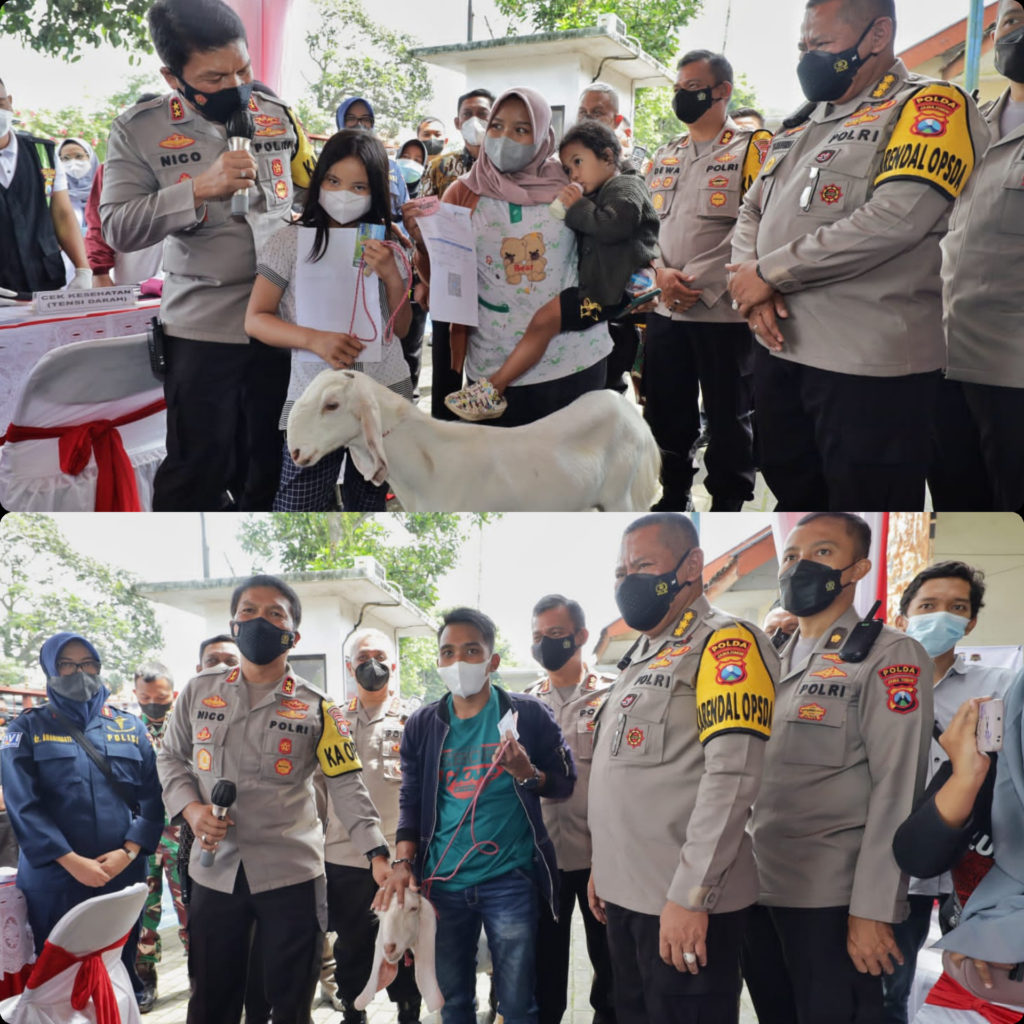 Ada hal yang menarik saat dilaksanakan vaksinasi Presisi serentak di halaman kantor kecamatan Ranuyoso kabupaten Lumajang Jawa Timur. Dimana Kapolda jatim Irjen Pol Nico Afinta bersama Forkopimda Kabupaten Lumajang membagikan hadiah doorprize bagi masyarakat yang datang untuk divaksin yaitu berupa 5 ekor Kambing, Kamis (24/3/2022)