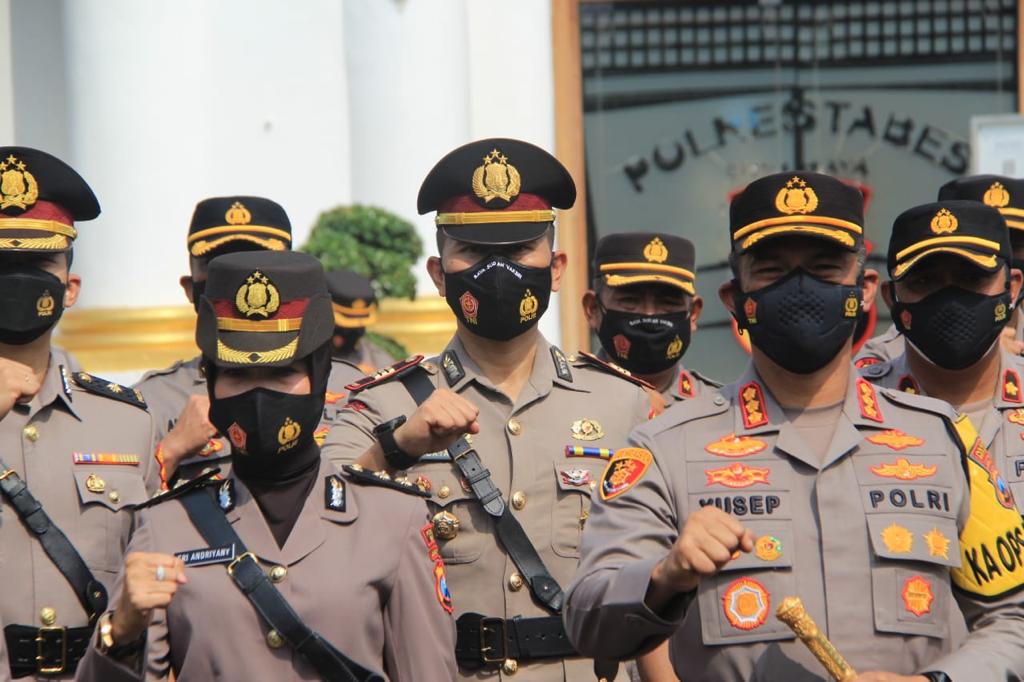 Kapolrestabes Surabaya, Kombes Pol Akhmad Yusep Gunawan didampingi pejabat utama (PJU) memimpin upacara serah terima jabatan sejumlah PJU dan Kapolsek Jajaran Polrestabes Surabaya dan melantik 11 Pejabat Baru di Lapangan Utama Polrestabes Surabaya , Senin (28/03/2022).