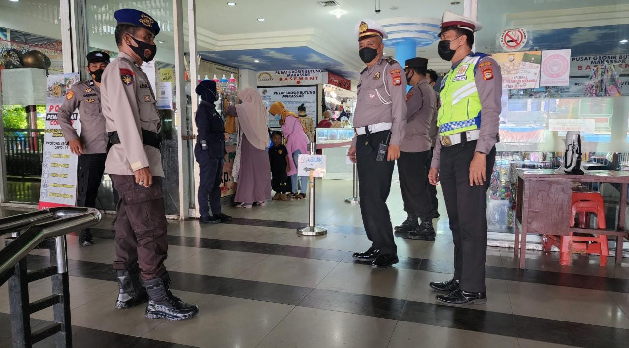 Tingkatkan blusukan dan Patroli dialogis di tempat Keramaian yang menjadi lokasi rawan penyebaran Covid 19, Tim On Call regu II Polres Pelabuhan Makassar mengajak masyarakat lebih disiplin terapkan protokol kesehatan di Pusat perbelanjaan Pasar Butung.