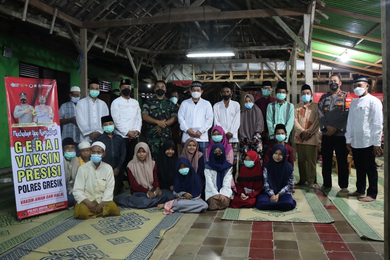 Mewujudkan Herd Immunty, Polres Gresik Vaksinasi Santri Usai Salat Tarawih