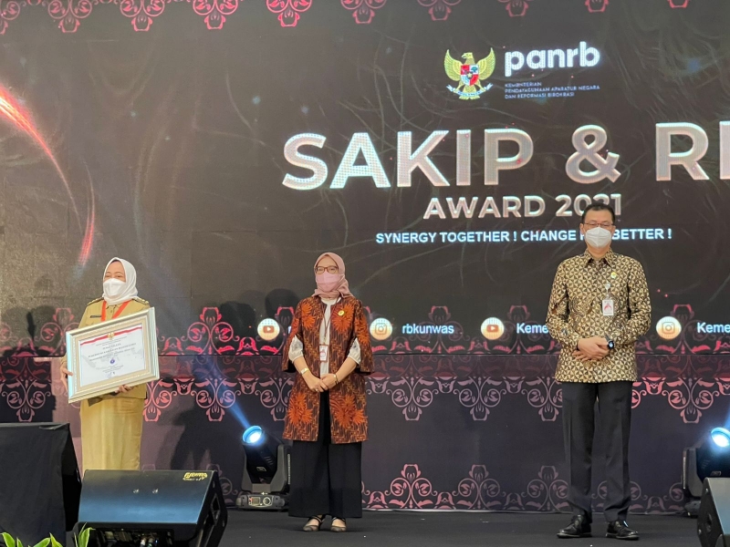 Pemkab Bojonegoro mendapat penghargaan Sistem Akuntabilitas Kinerja Instansi Pemerintah dan Reformasi Birokras (SAKIP & RB) Award 2021 dari Menteri Pendayagunaan Aparatur Negara dan Reformasi Birokrasi (PANRB),di bidang akuntabilitas kinerja dan pelaksanaan reformasi birokrasi dengan nilai predikat B, di Balai Sudirman, Selasa (5/4/2022).