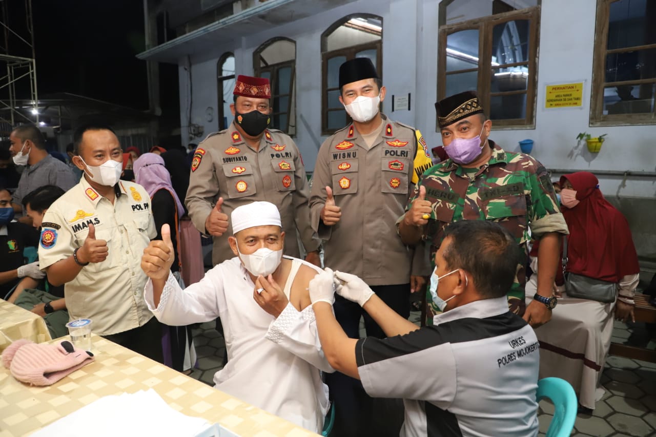Polres Mojokerto Waktu malam hari di bulan Ramadhan kali ini dipilih Polres Mojokerto untuk melaksanakan kegiatan Vaksinasi yang merupakan program pemerintah dalam membentuk Herd Imunity. Kegiatan Vaksinasi dilakukan di Masjid Baitul Mashur Ngoro Mojokerto Selasa (5/4) setelah sholat Terawih.