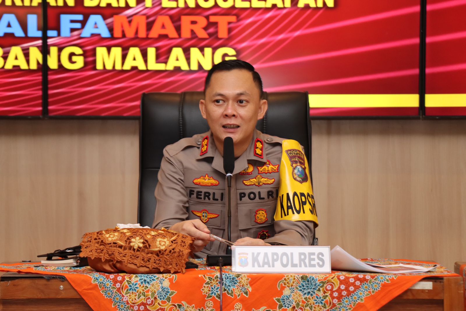 Kegiatan yang dilaksanakan di gedung Sanika Satyawada Polres Malang tersebut, dihadiri juga oleh Kasat Reskrim AKP Donny K. Bara’langi, Kasat Binmas AKP Indra Subekti, serta perwakilan staf dan karyawan Alfamart.