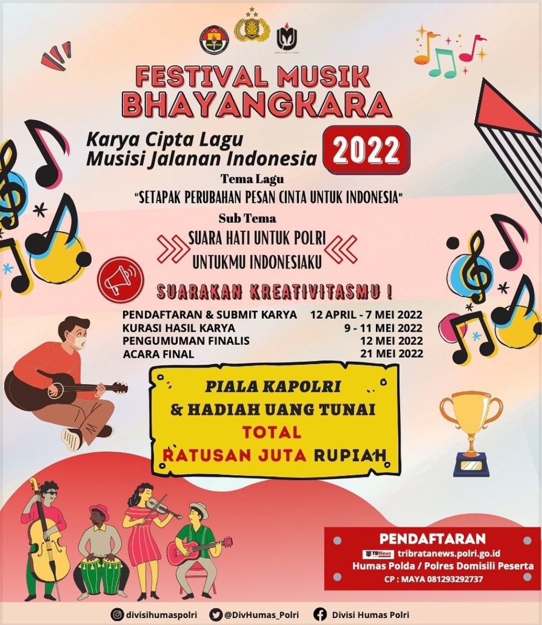 Ayo Sobat Polri khususnya Musisi Jalanan se-Sulut, siapkan penampilan kalian & ikuti Festival Musik Bhayangkara 2022.