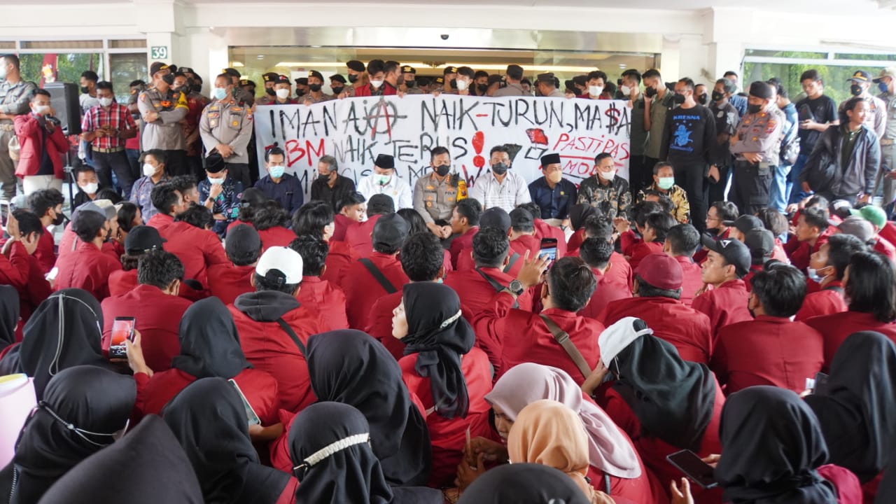 Aksi demonstrasi menyikapi berbagai kebijakan pemerintah belakangan ini, juga berlangsung di Kabupaten Sidoarjo. Ratusan mahasiswa dari Ikatan Mahasiswa Muhammadiyah (IMM) Sidoarjo menyalurkan aspirasinya di Gedung DPRD Kabupaten Sidoarjo, Selasa (12/4/2022).