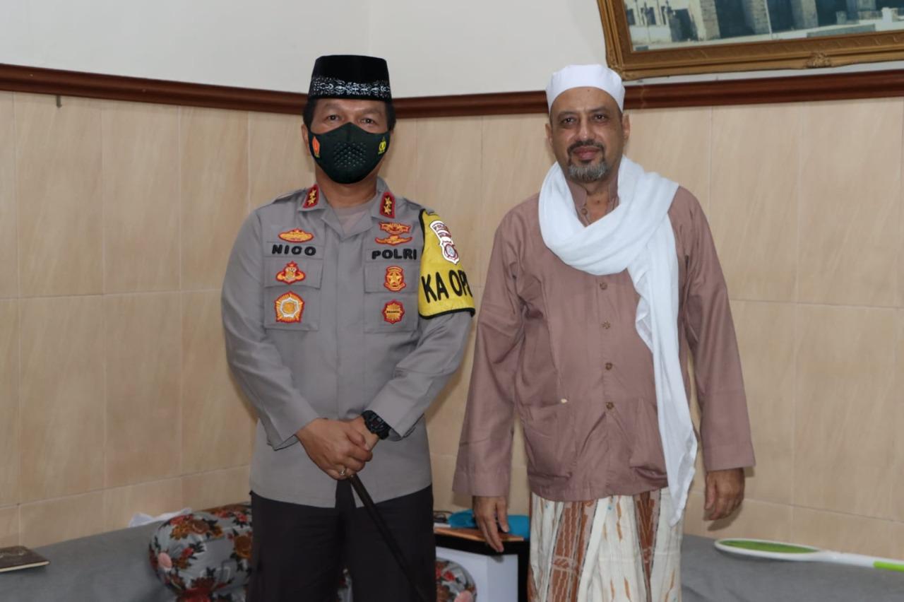 Kapolda Jawa Timur Irjen Pol Nico Afinta bersama Pejabat Utama Polda Jatim dan Kapolres Pasuruan Kota, Senin (18/4/2022) melakukan silaturahmi dengan tokoh agama Habib Taufiq Assegaf, Ketua Umum Rabitah Alawiyah, sekaligus Pimpinan Pondok Pesantren (Ponpes) Suniyyah Salafiyah Kota Pasuruan.
