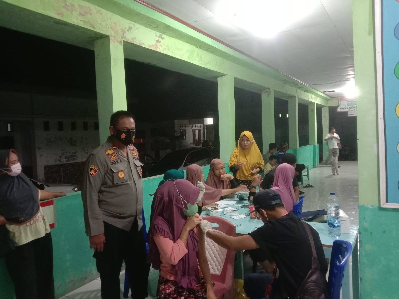 Personel Polsek Posigadan dipimpin Kapolsek Ipda Taufiq Anis, SE melaksanakan pendampingan dan pengamanan kegiatan Vaksinasi malam hari di Puskesmas Momalia Kecamatan Posigadan Kabupaten Bolmong Selatan sebelum dan sesudah Sholat Tarawih, Rabu 20/04/2022.
