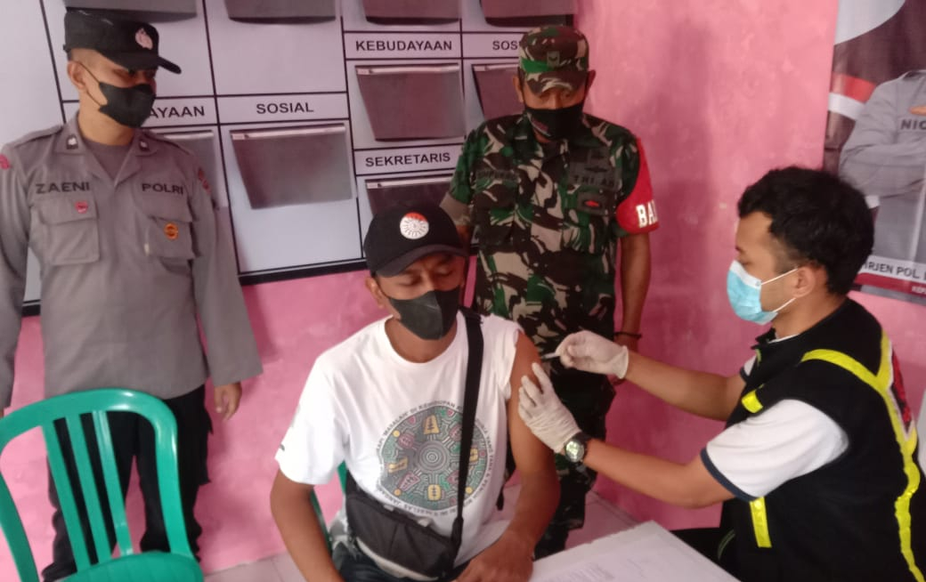 Sebelum dilakukan vaksinasi oleh tim vaksinator dari DOKPOL Polres Malang, para peserta vaksin di screening terlebih dahulu, kemudian dilaksanakan vaksinasi.