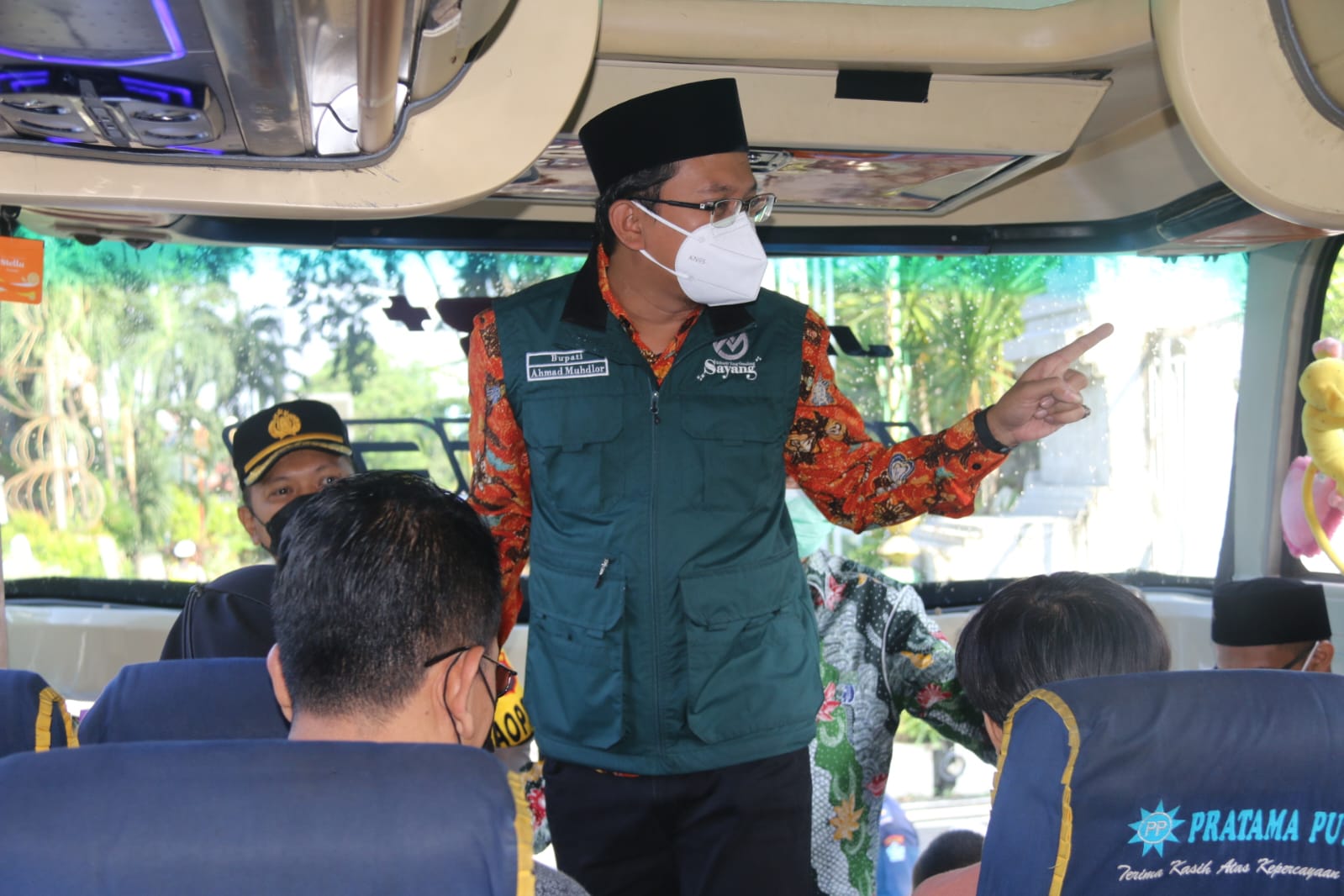 Bupati Sidoarjo Ahmad Muhdlor (Gus Muhdlor) memberangkatkan 20 Bus Mudik yang diikuti ribuan warga Sidoarjo. Jum’at, (29/4/2022). Pemberangkatan mudik ke berbagai tujuan kota di Jawa Timur itu dihadiri jajaran Forkopimda Sidoarjo setelah kurang lebih vakum selama 2 tahun karena pandemi.