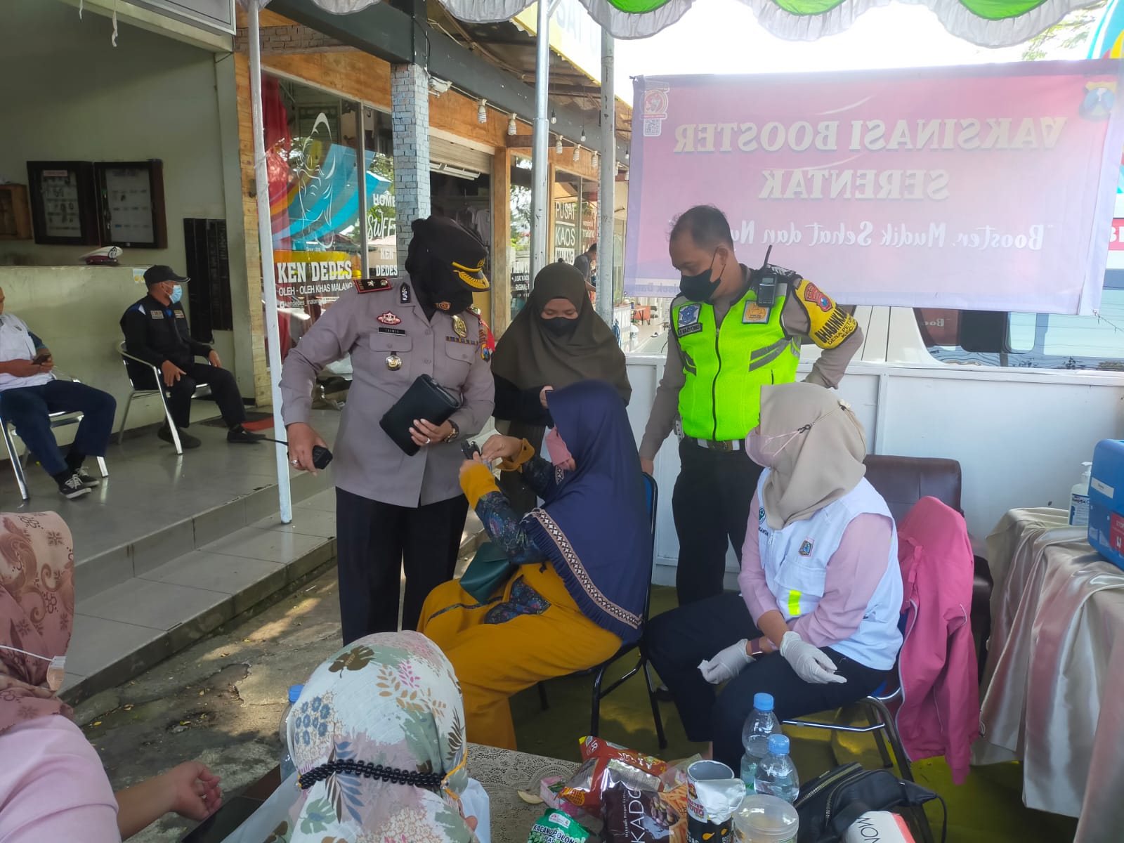 Kapolres Malang AKBP Ferli Hidayat melalui Kapolsek Dau Kompol Triwik Winarti menerangkan bahwa Pos Pam Wisata juga menyediakan layanan kesehatan dan vaksin dosis 1, 2 dan booster bagi para pengunjung Taman Wisata Sengkaling. – Malang