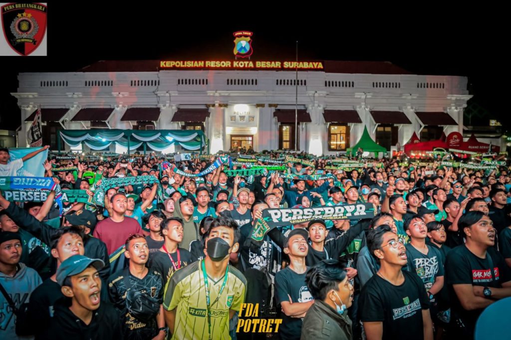 Para Bonek Bonita juga dapat menyaksikan dari luar Mapolrestabes tepatnya di sepanjang jalan Sikatan Surabaya. Sult/hms19