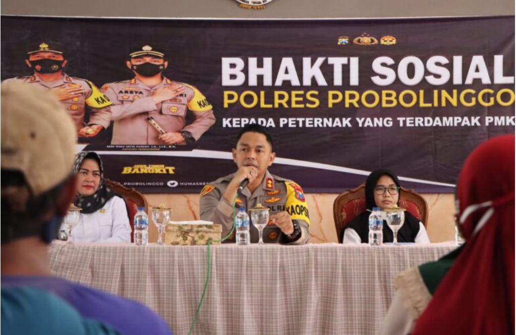 Dalam sambutannya, Kapolres Probolinggo AKBP Teuku Arsya Khadafi mengucapkan turut prihatin atas yang dialami para peternak akibat wabah PMK yang melanda hewan ternaknya. Ia pun menyampaikan beberapa edukasi terkait langkah penanganan hewan ternak yang terpapar PMK.