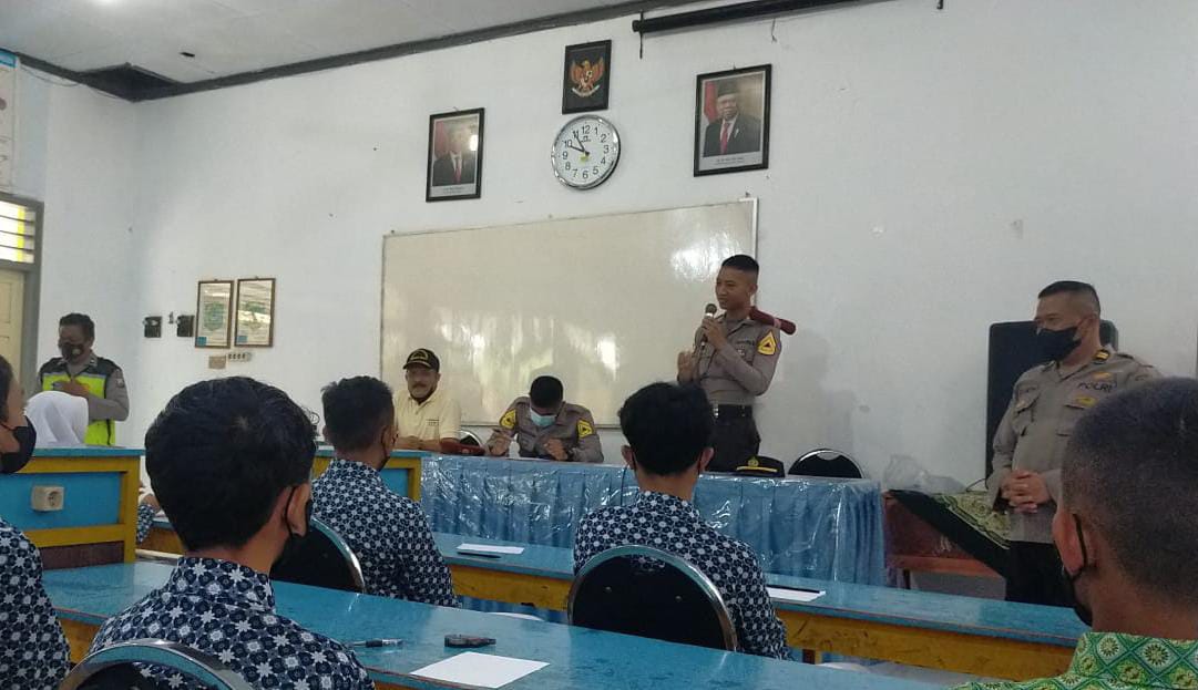 Kapolres Malang AKBP Ferli Hidayat melalui Kasat Binmas Polres Malang AKP Indra Subekti bersama Kapolsek Wagir AKP Fajar Rianu, Kanit Binmas Polsek Wagir Aiptu Purnomo dan Siswa Latihan Kerja Taruna Akpol Angkatan 55 Batalyon Satya Dharma melaksanakan kegiatan himbauan dan penyuluhan tentang bahaya penyalahgunaan narkoba dan Kamseltibcar Lantas serta mensosialisasikan tilang elektronik kepada para Guru dan Pelajar di SMP Negeri 1 Wagir, Desa Sitirejo, Kecamatan Wagir, Kabupaten Malang, Kamis (23/06/2022).