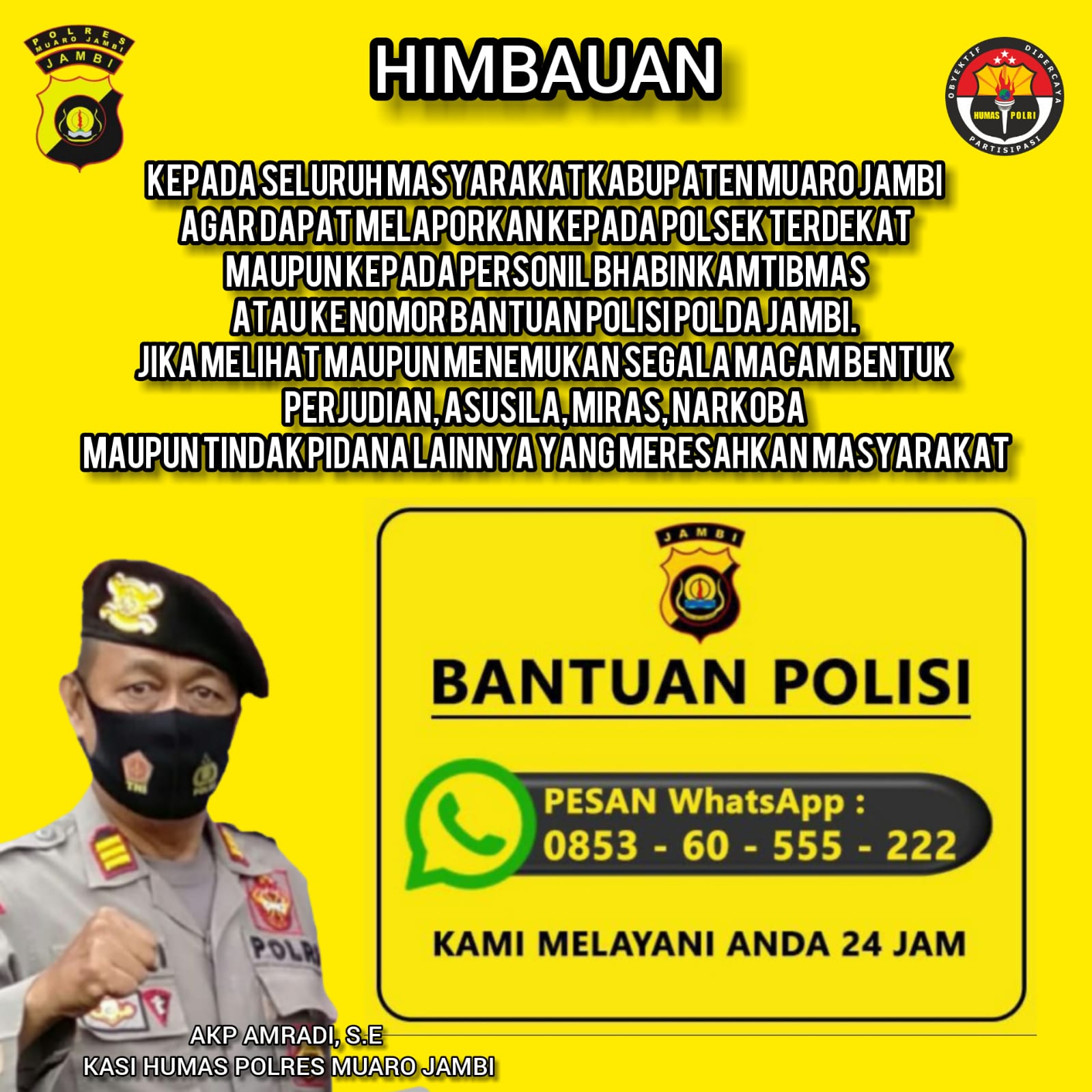 Guna menindaklanjuti Intruksi dan Arahan Kapolri Jenderal Polisi Drs. Listyo Sigit Prabowo, M.Si, Kepolisian Resor Muaro Jambi, langsung merespon intruksi Kapolri tersebut, untuk memberantas berbagai jenis perjudian maupun tindak pidana lainnya yang ada di wilayah hukum Polres Muaro Jambi.