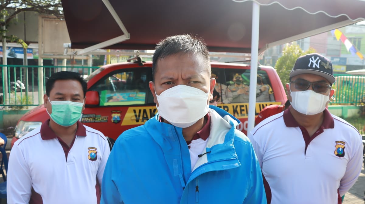 Tiga mobil layanan publik dihadirkan Polresta Sidoarjo di Pasar Tulangan, Sabtu (20/8/2022) pagi. Antara lain layanan vaksinasi Covid-19, SKCK Keliling Online dan Samsat keliling.