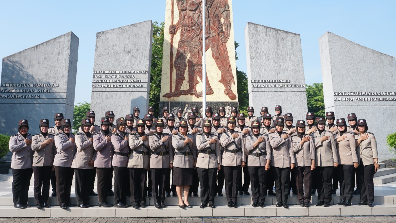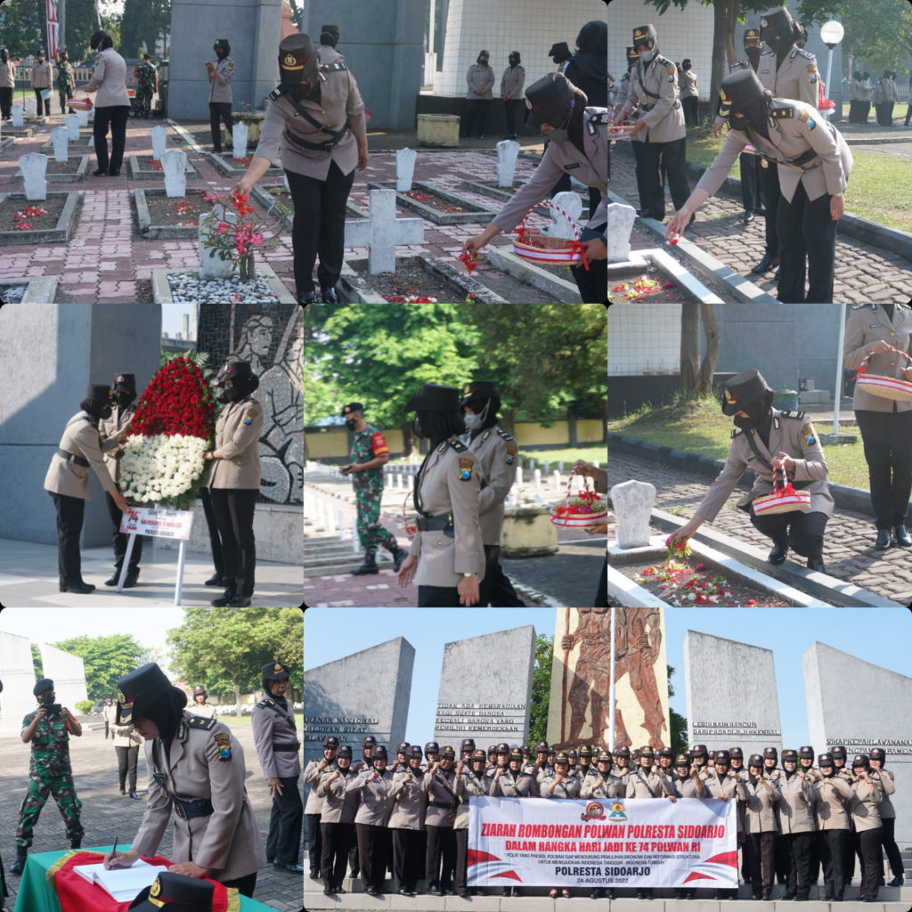 Menjelang Hari Jadi Polisi Wanita (Polwan) Republik Indonesia ke-74 pada 1 September 2022, Polwan Polresta Sidoarjo melaksanakan upacara ziarah rombongan dan tabur bunga di Taman Makam Pahlawan (TMP) Kusuma Bangsa, Sidoarjo, Rabu (24/8/2022).