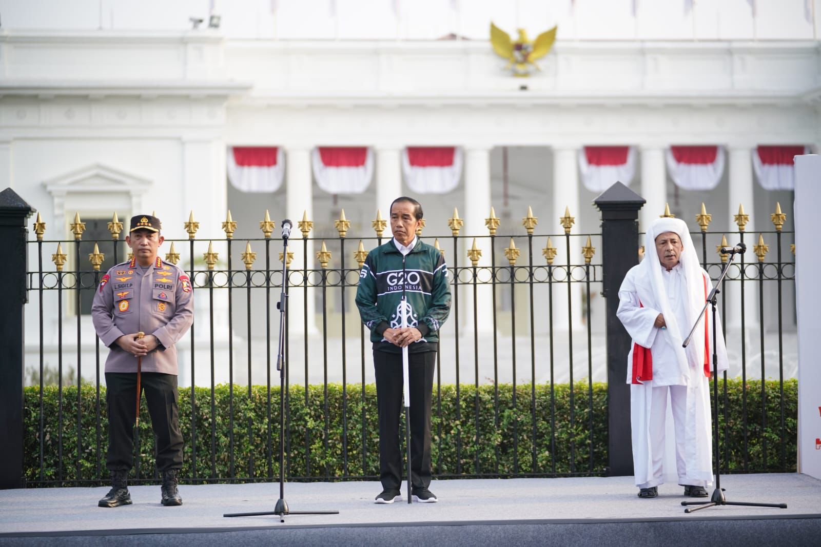 Kirab merah putih ini dilepas oleh Presiden Indonesia Joko Widodo (Jokowi) dari depan istana merdeka bersama Ulama karismatik Habib Luthfi bin Ali bin Yahya dan Kapolri Jenderal Listyo Sigit. Hms/Sulton