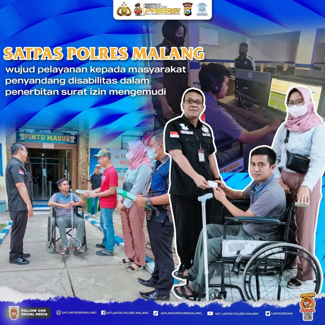Kapolres Malang AKBP Ferli Hidayat berupaya dalam memberikan pelayanan prima bagi masyarakat yang akan melakukan pembuatan dan penerbitan Surat Izin Mengemudi (SIM) khususnya bagi penyandang disabilitas.