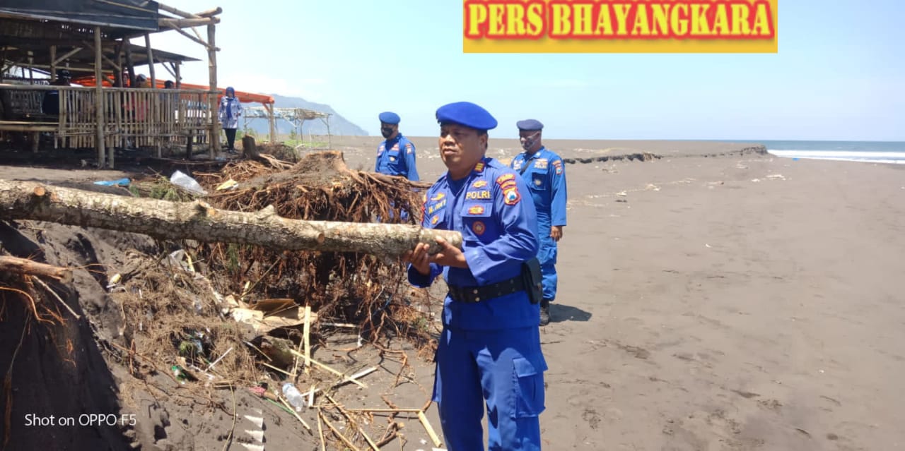 Tidak hanya membantu mengevakuasi, Kasatpol Airud Polres Jember AKP. M. Na’i yang memimpin langsung kegiatan ini juga memberikan himbauan kepada warga sekitar dan juga pengunjung pantai Cemara untuk menjauhi bibir pantai.