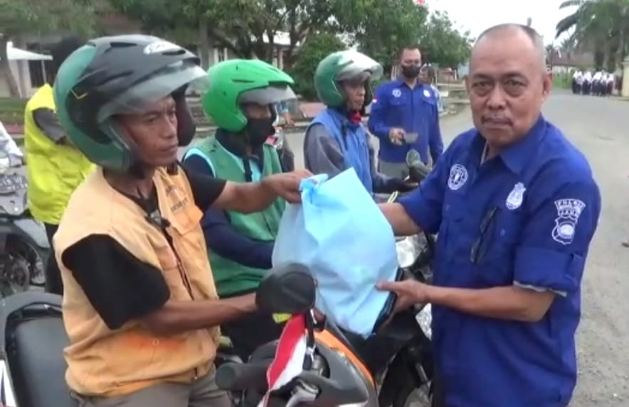Kasi Humas AKP Amradi. SE saat memberikan paket sembako