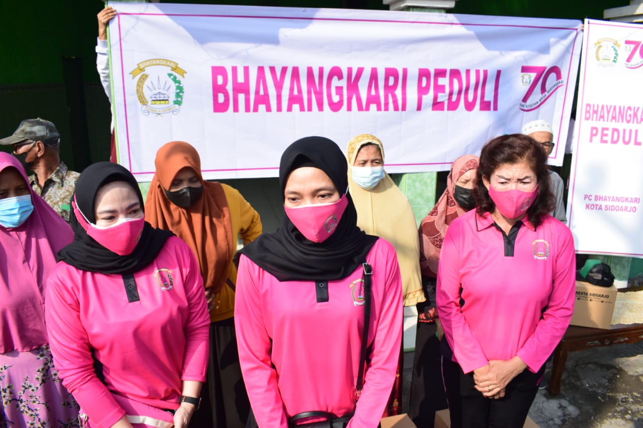 Kepedulian pada masyarakat terdampak kenaikan harga BBM, dilakukan Ketua Bhayangkari Cabang Kota Sidoarjo Ny. Maya Kusumo beserta pengurus dengan membagikan bantuan sosial berupa paket sembako bagi masyarakat.