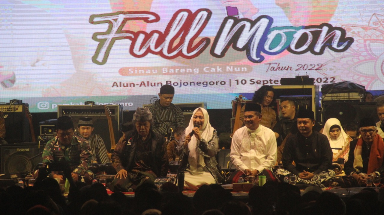 Emha Ainun Najib atau kerap disapa Cak Nun dalam kesempatan ini mengatakan, berkumpulnya seluruh ma’iyah menjadi awal dari rezeki, kesatuan dan persatuan di Bojonegoro. Malam ini, bersama-sama mengajak untuk menghormati tanah kelahiran.