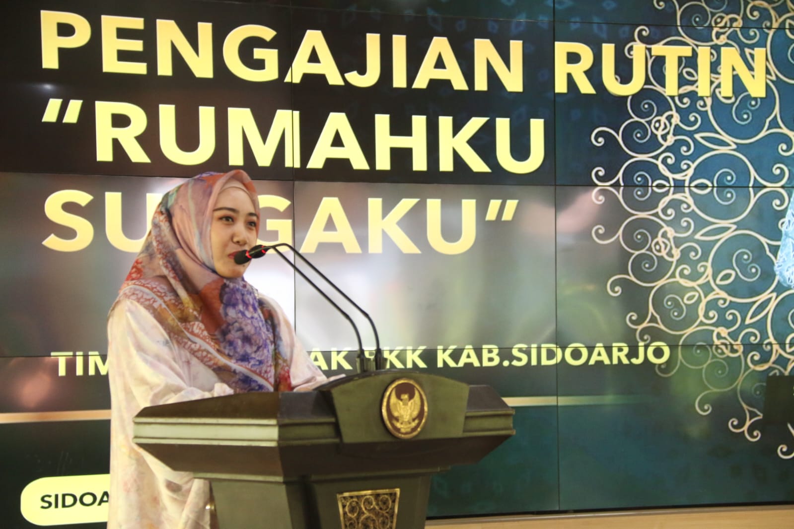 Dalam sambutannya Ketua TP PKK Kabupaten Sidoarjo Hj. Sa’adah Ahmad Muhdlor mengatakan tema Rumahku Surgaku sengaja disuguhkan dalam pengajian kali ini. Pasalnya ia yakin apa yang menjadi tema tersebut pasti didambakan semua keluarga. Keluarga yang mendambakan rasa bahagia, aman, nyaman. Menurutnya untuk mewuiudkan kehidupan berkeluarga seperti itu dibutuhkan pondasi dasar rumah tangga bahagia. Salah satu caranya dengan saling memberikan kenyamanan, cinta dan kasih sayang yang di dasarkan pada agama.