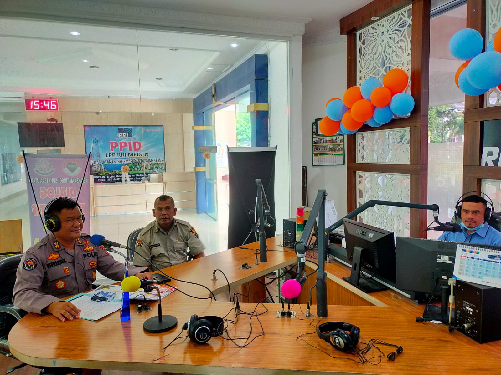 Kegiatan Dialog Interaktif Polda Sumatera Utara yang bekerjasama dengan RRI Medan pada Rabu, 14 September 2022, sekitar pukul 15.00-16.00 WIB, kali ini diisi oleh Humas Polda Sumatera Utara melalui Subbid Penmas Bid. Humas, dengan petugas pelaksana yakni, AKBP Dr Herwansyah Putra SH,. M Si, Jamaluddin S.Sos dan Aiptu Widodo dengan topik “Perkembangan Kamtibmas di wilayah hukum Polda Sumatera Utara,” di Lintas Medan Sore dengan Chanel FM 94,3 Pro 1, RRI Medan, Jalan Gatot Subroto No. 214 Medan, dan sebagai host Ziad Zidane.