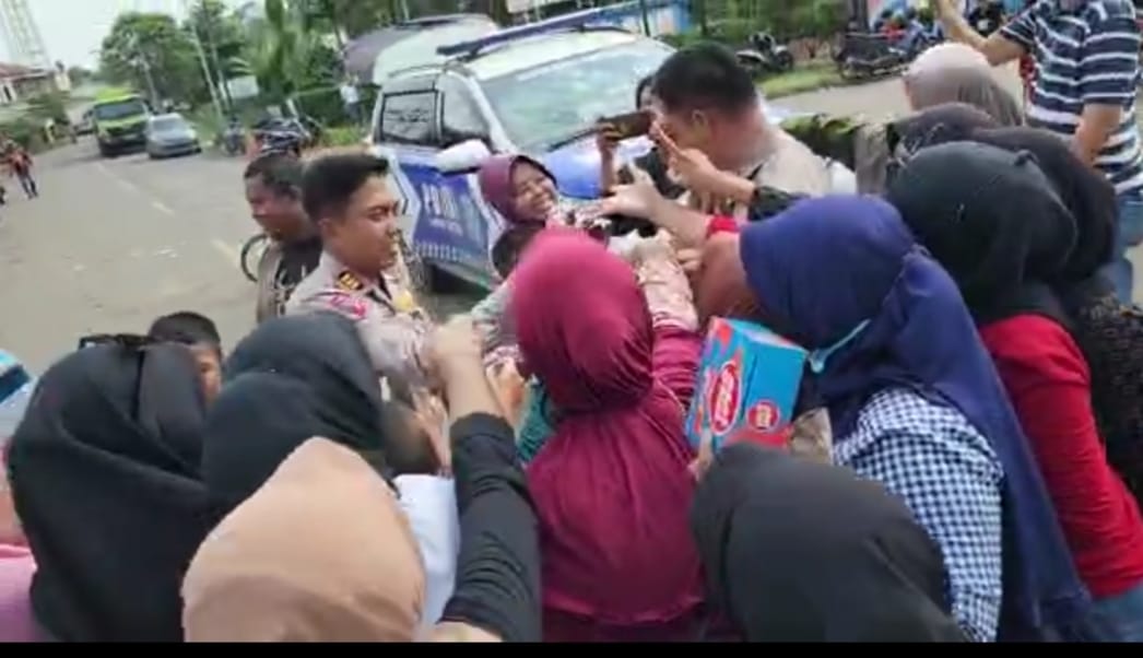Kasat lantas AKP Angga Luviyanto S.Pd .MH Pemberian minuman dan snack tersebut sebagai wujud kepedulian dan perhatian dari pihak kepolisian kepada masyarakat yang bertahan di lokasi tersebut.