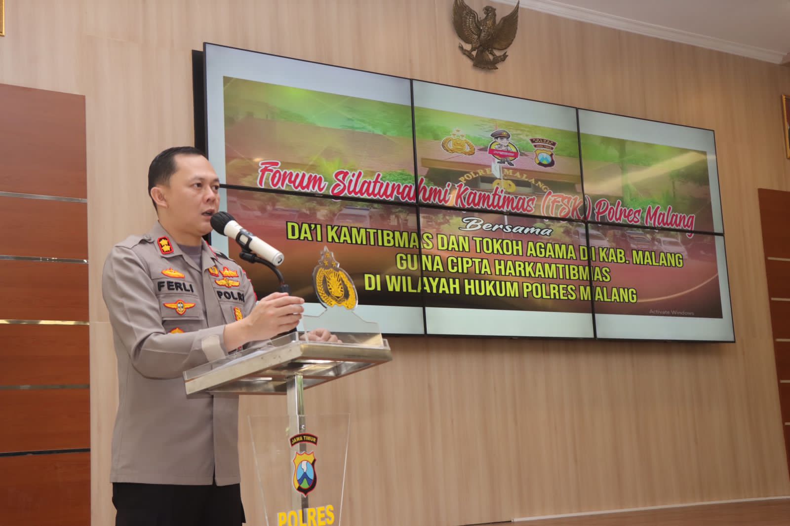 Dengan dihadiri oleh 30 Tokoh Agama dan 30 Tokoh Masyarakat yang masing-masing mewakili tiap-tiap Kecamatan yang ada di Kabupaten Malang. Ferli secara langsung menyampaikan pentingnya peran Dai Kamtibmas untuk membantu menjaga dan memelihara Kamtibmas yang kondusif.