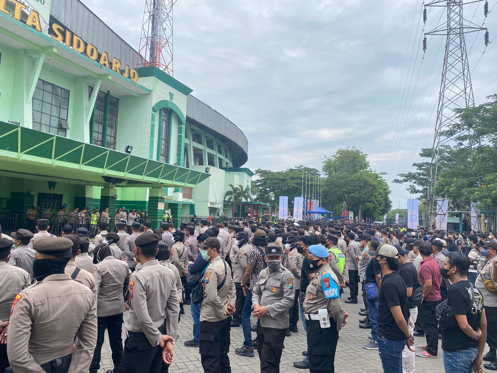 Kesiagaan anggota personil Polresta Sidoarjo, pengawalan gelar upacara,hari Kamis tanggal 15/9/22 pukul 11.00 Wib, dilaksanakan apel pengamanan Sepakbola Liga I antara Persebaya VS Rans Nusantara FC di Stadion GOR Delta Sidoarjo sesuai Surat Perintah Kapolresta Sidoarjo Nomor Sprin tanggal 13/9/2022.