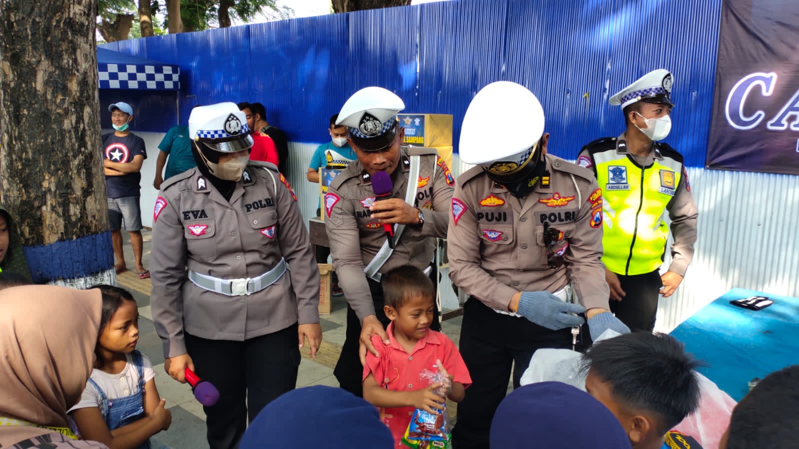 “Agar masyarakat lebih dekat serta mehami tugas polisi, pelayanan di jalan, di tempat keramaian, di kantor pelayanan termasuk pengendalian penyampaian aspirasi di depan umum Polantas yang presisi bangkit dan bekembang bersama menuju indonesia maju pungkas Kanit Kamsel Aipda Mashudi sh.