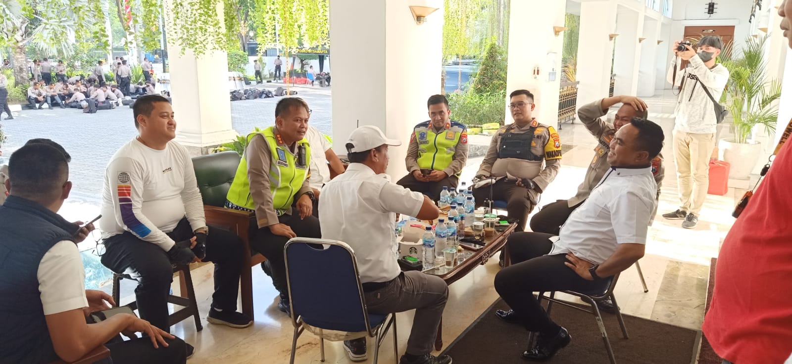 Tepat tiba pukul 13.30 wib serombongan Polresta Sidoarjo di kantor gubernuran Jatim, dan sambutan hangat dari Wakapolrestabes AKBP Hartoyo, serta personil kepolisian Sat Intelkam Polrestabes Surabaya, sapaan hangat pula oleh bapak H Ach Fauzy ketua FSPMI Jatim.