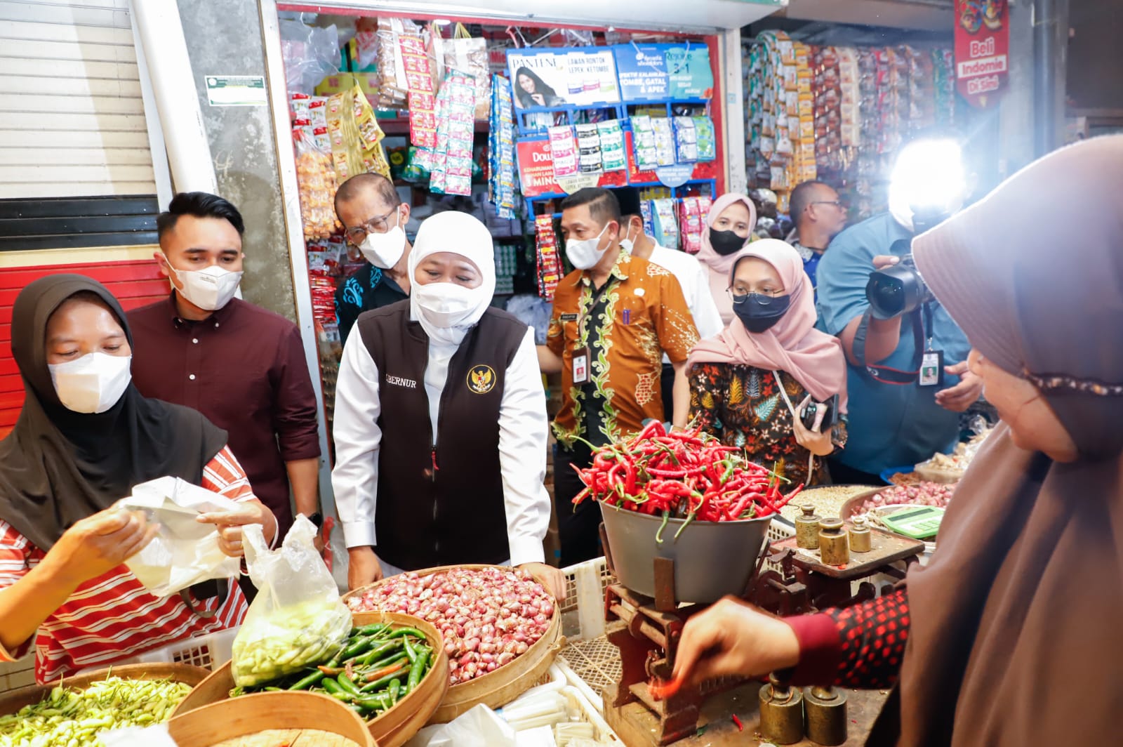 “Untuk minyak goreng curah sekarang Rp 12.000 per liter, ini di bawah HET. Begitu juga dengan telur yang di bawah HET. Untuk bawang merah rata-rata Rp 22.000 per kilogram, sedangkan cabai Rp 40.000 per per kilogram,” terang Khofifah.
