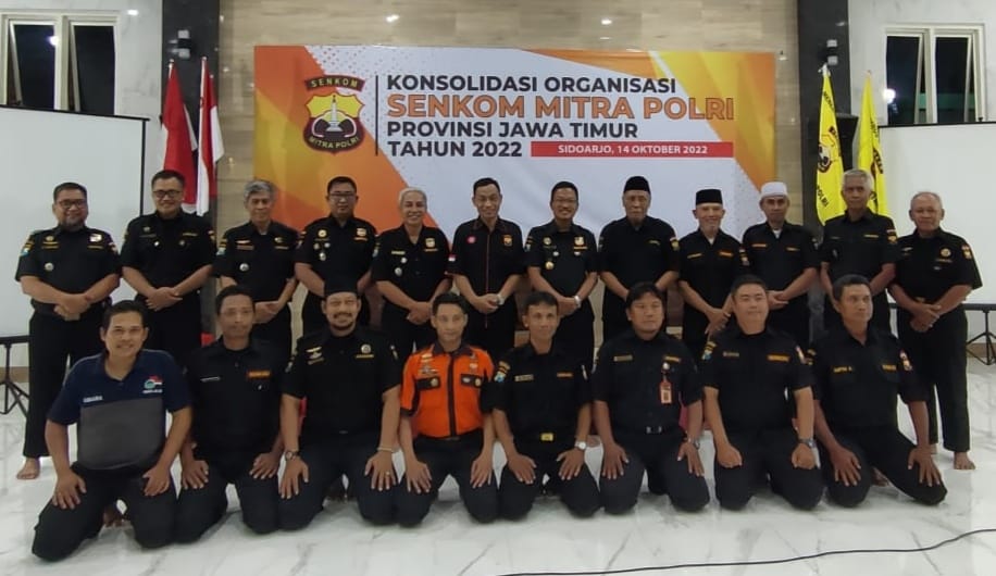 Konsolidasi Organisasi Senkom Mitra Polri Provinsi Jawa Timur diikuti 60 personil dari lima kabupaten kota meliputi Sidoarjo, Surabaya, Mojokerto dan Jombang dilaksanakan di Gedung Barokah Sruni Gedangan Sidoarjo, Jumat malam (14/10/22).